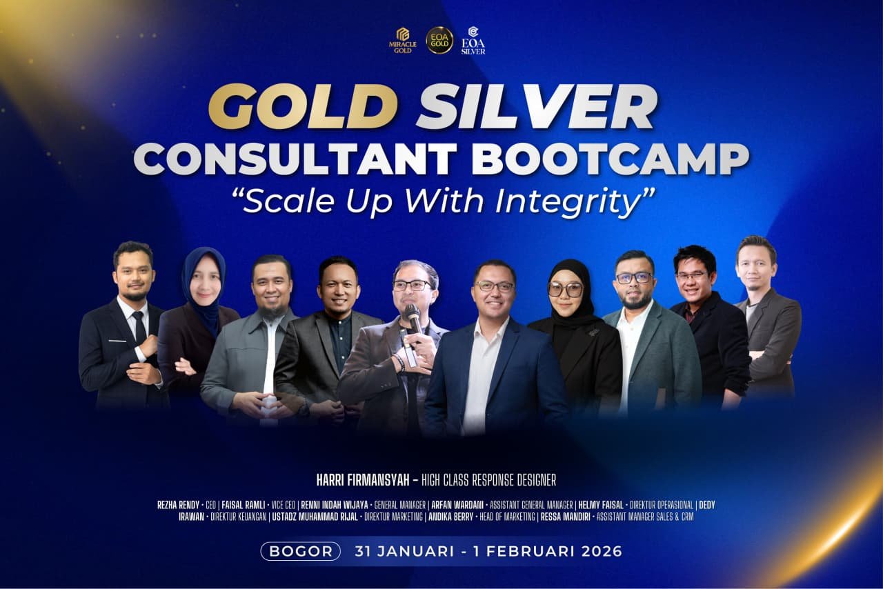 Gold Silver Consultant Bootcamp “Scale Up With Integrity” 2026 merupakan program pembelajaran intensif yang diselenggarakan bagi konsul...